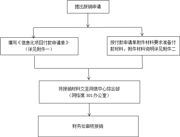 根据学校财务报销规定要求,为提高工作效率,网信中心对信息化建设中的项目付款流程做出规范,该付款流程适用于经费由网信中心负责,而建设单位不是网信中心的项目,如业务应用系统维保等项目,具体办事流程如下所示: